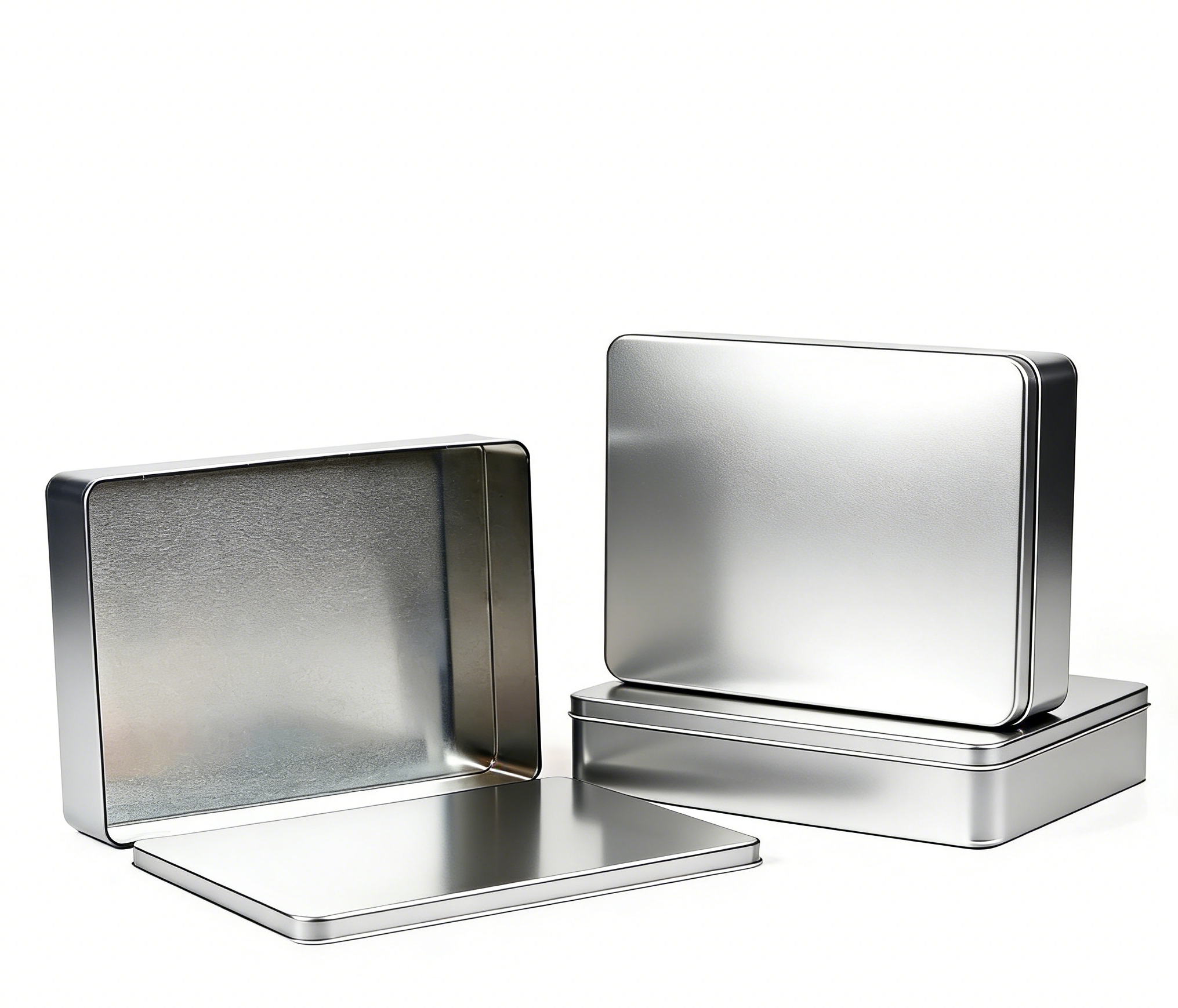 Our foodgrade rectangular metal tin cans with different structures and sizes that are optional to pack any products except liquid. The tins are featured by different lid types like hinged lid, window lid, pillow lid , slip lid and different bottom types like edge rolled internal bottom , edge rolled external bottom, seamless bottom.